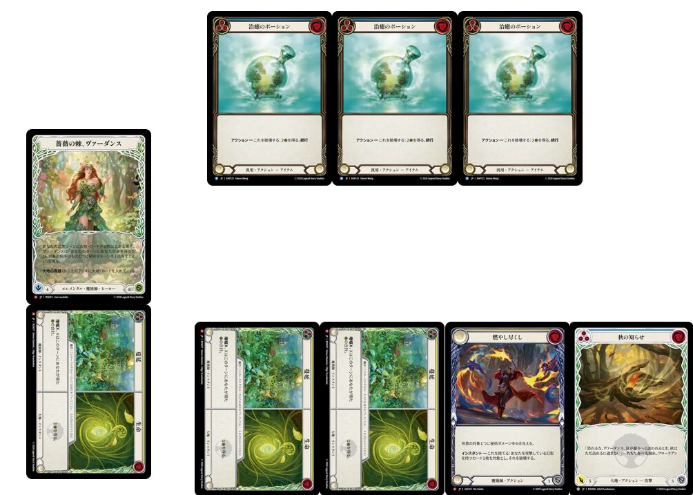 《ヴァーダンス》について語る際に欠かせないもう一つのポイントは《蔓延/生命》と《治癒のポーション》を組み合わせたコンボです。《ボウナムのアミュレット》が採用されている場合、4枚目の《治癒のポーション》として採用されています。