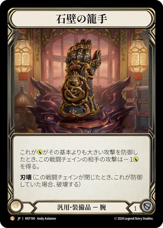 その他の3名とも共通して採用しているサイドカードも印象的です。腕装備《石壁の籠手》は《シンドラ》対策が主な目的の装備です。《燃え滾る報復》の後の短剣の攻撃に差し出せれば概ね3点以上得できます。