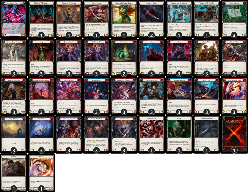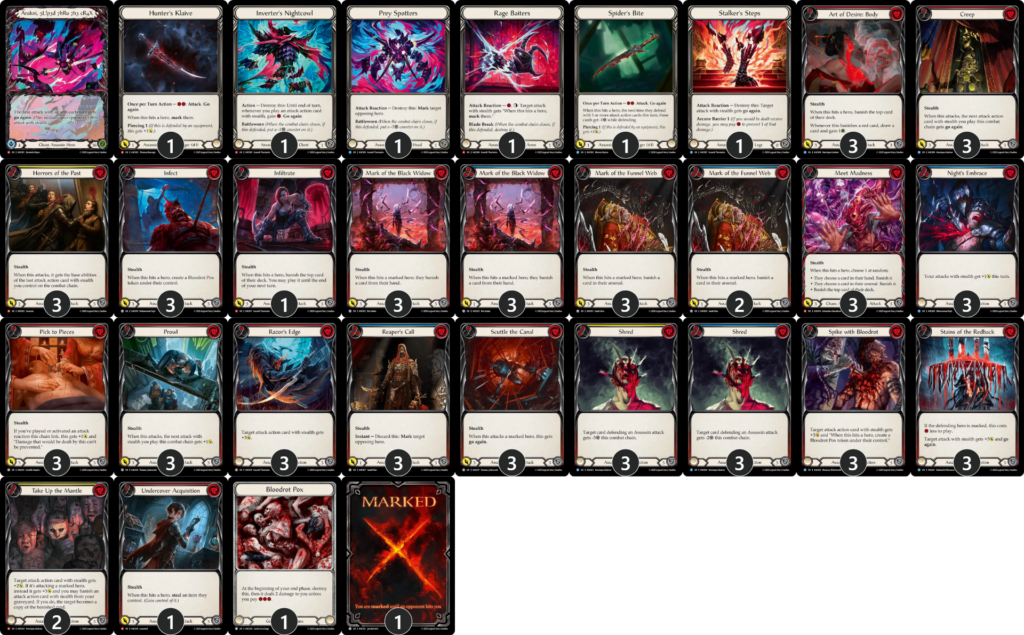 「暗殺者」クラスはフレッシュ&ブラッドの中で最も相手の妨害が得意なクラス。相手に干渉したり、読みあいが好きな方には「アーモリーデッキ:アラクニ」からCC構築を始めるのがオススメです!