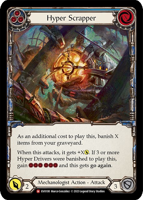 《Hyper Scrapper》も珍しいカードです。《Hyper Scrapper》は後半、アイテムが墓地に大量にある時に、大量のリソースを払ってフィニッシュ手段にすることができるほか、墓地のアイテムを追放しておくことで《Prismatic Lens》や《Haist》など、追放領域のアイテムを参照するカードの下準備もできます。