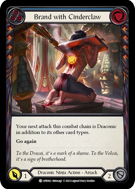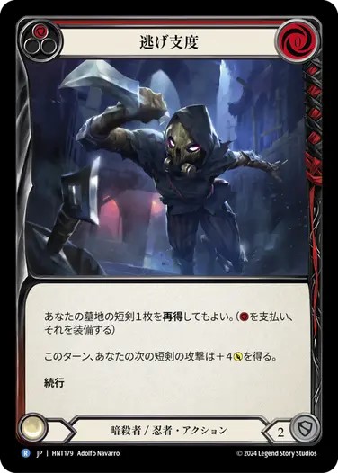 これら2種のカードにより青や黄をピッチして《報復のクナイ》を二回振るターンが非常に強力にできる構築です。《灸を据える》はターン中のバフなので、戦闘チェインを閉じて《報復のクナイ》を墓地に落とし、回収して再度振ればまた+1点が乗るのは意識したいテクニック。