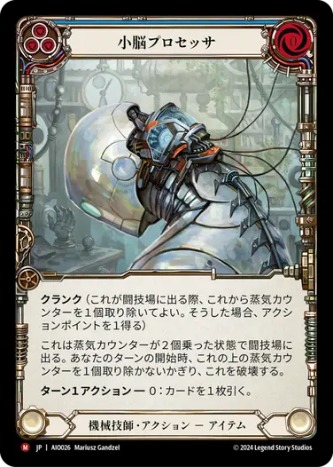 Sam選手のリストは《最高速度》を排すことで、《Soup Up》や《Bios Update》などのカードを採用可能にしています。《Soup Up》により0コスト4点続行が増えているのは勿論、《Bios Update》は能力をフルに使えれば0コスト8点以上になる強力なカードです。《ダッシュ I/O》の能力と《Bios Update》で出したアイテムでそれぞれ「クランク」すればアクションポイントが3まで増加させることも可能です。