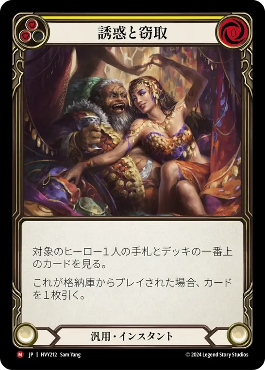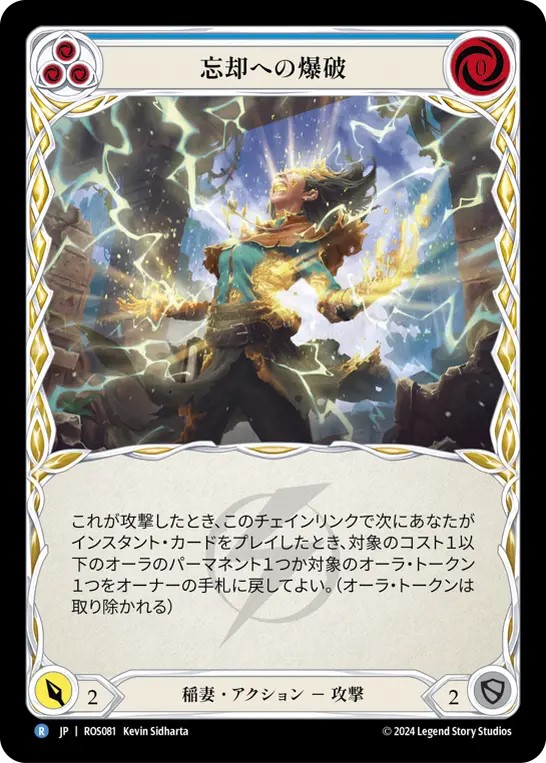 青いカードは《機運の仮面》で引いても損しないカードを軸に採用されていますが、面白いカードとしては《エネルギー・ポーション》があります。《Spreading Flame》は青をピッチしながらプレイできると強力ですが、赤4枚の手札に来ると弱いカードになってしまいがちです。そんな時《エネルギー・ポーション》が置けていると、そこからリソースを出して強力なターンにできます。