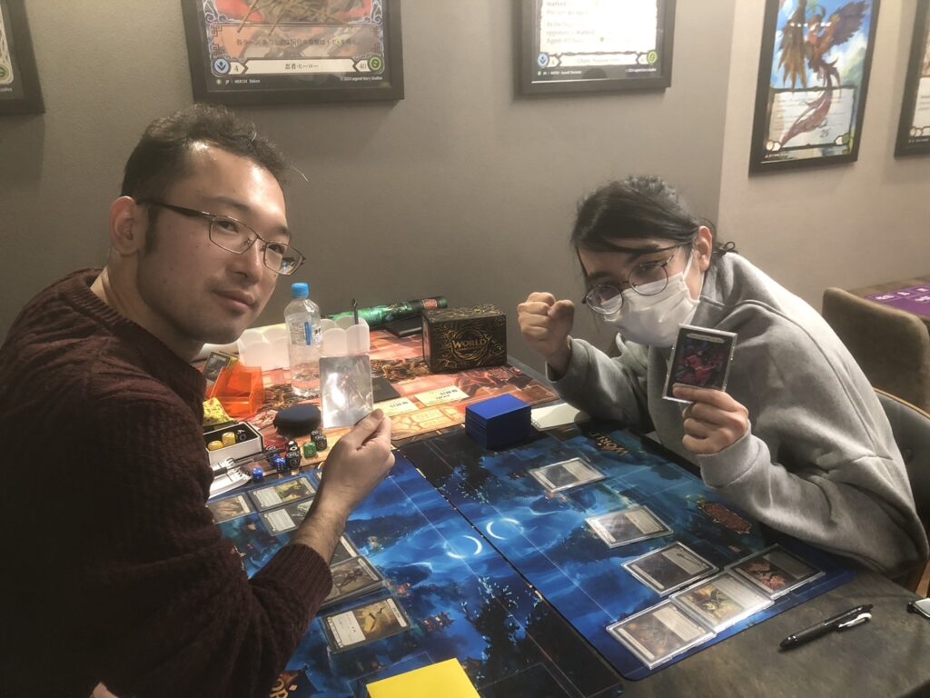 決勝はSaito選手(写真左)の《金の砂のカッサイ》対 ヤダ選手(写真右)の《扌友|✝シ茖♄T=アラクニ》!