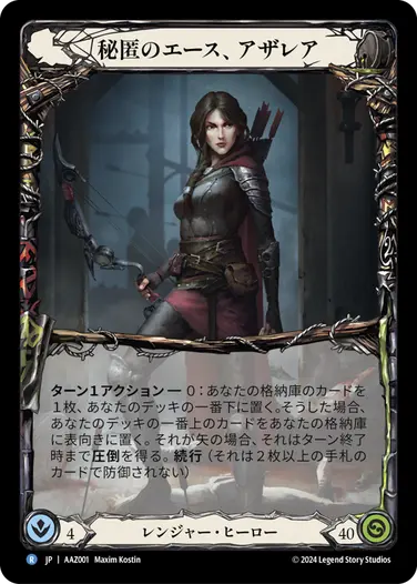 得意なことは3-5点の連続攻撃、という前のめりなヒーローで、手札を攻撃に使って連続攻撃するほど強力になる性質を持ちます。反面、防御は少し苦手。防御値は2と少し低めのカードが多いです。つまり、攻撃的なプレイが好きな方にオススメのヒーローです!