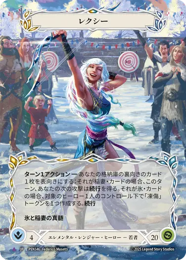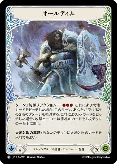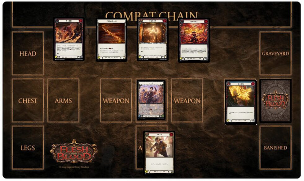 《ファイ》の能力はインスタントなので、相手ターンにも起動可能。あまり起動する機会はありませんが、「相手が先手でオーラやアイテムを設置してアクションポイントを使ってターンパスしてきた際に、自分の手札が悪くピッチしたい」「相手のプレイしてきた《墓守り》を青ピッチで回避する」などの状況では起動することがあります。