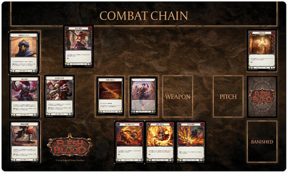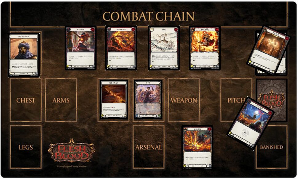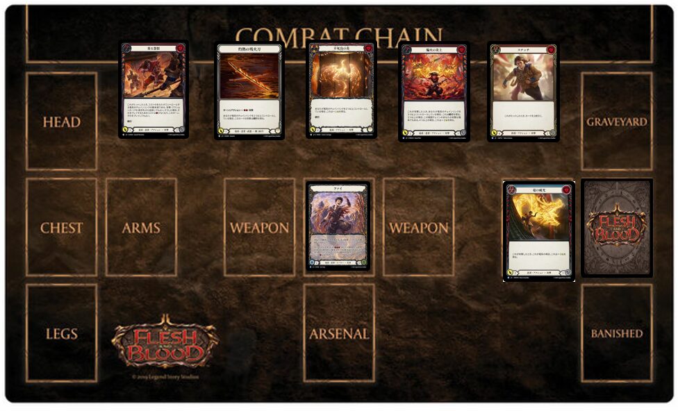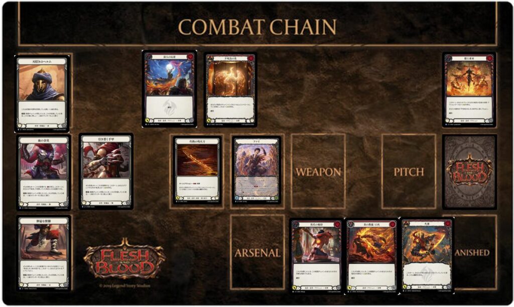 《ファイ》は基本的に戦闘チェインが続くほど得をするヒーローですが、まれ戦闘チェインを切った方が得な状況があります。「戦闘チェインを切る」という選択自体は攻撃中のプレイヤーが、攻撃を終了して次の攻撃に入る前に、任意で選択できます。戦闘チェインを切ると具体的に何が起こるかというと、その攻防に使用したカードが墓地に送られます。