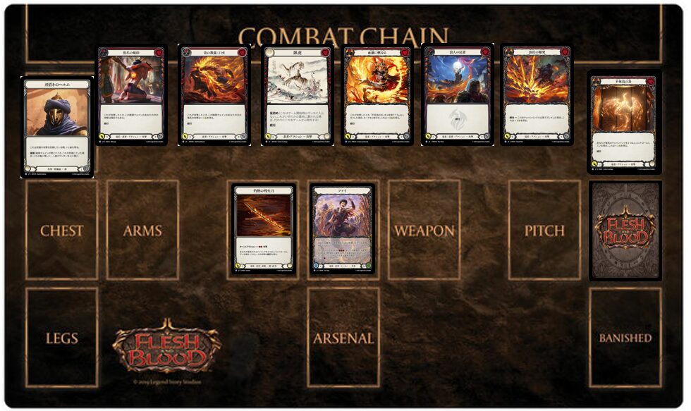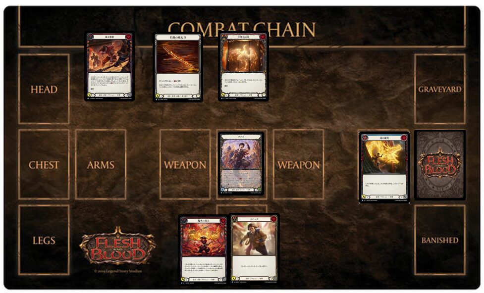 例えば、墓地に《不死鳥の炎》が1枚しかない時に《捲土重来》で《不死鳥の炎》を回収したターンは基本的に《ファイ》の能力が使えませんが、戦闘チェインを切ることで《ファイ》の能力が使用可能なパターンがあります。