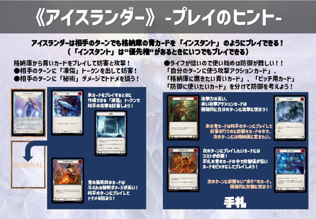 それぞれのヒーローについて 簡易紹介、プレイ方針、デッキ改造の3枚構成で紹介しますので、