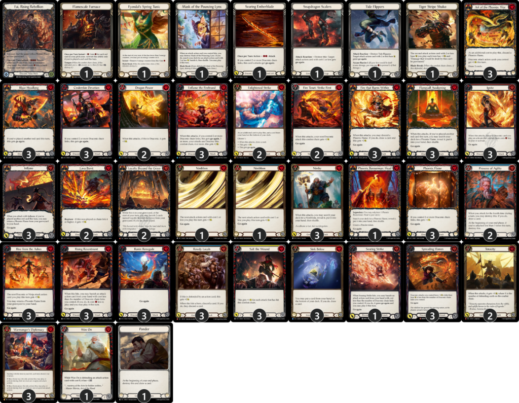 《Vynnset》同様「レイス英雄譚」で大きく強化されたヒーロー《ファイ》が入賞。「レイス英雄譚」で登場した《不死鳥の技:戦》、《血潮に燃ゆる》、《煽火の炎上》が全て3積みされています。