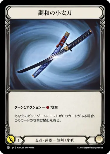 防御とライフ回復で耐久しながら毎ターン《調和の小太刀》を振り続けたら勝つ!という思想のデッキですね。