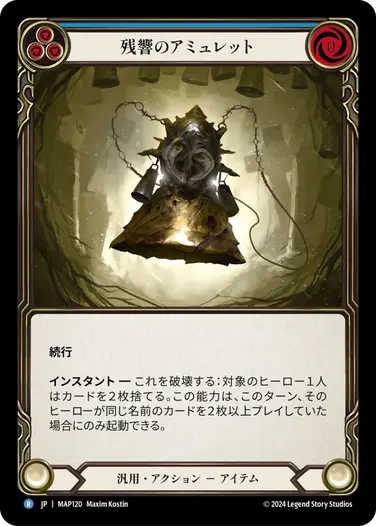 「印」カードが1個あれば0コストの非攻撃アクションを「否定」(=打消し、効果を無効化)することができるカードで、《オシリオ》対策のメタカードである《残響のアミュレット》を消すことが可能。他、シンプルに強力な「非攻撃アクション」を消すだけでも強力。