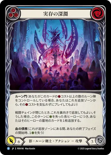 「ルーン陣」のダメージが通りやすい《シンドラ》などには優位が取れているヒーローでしたが、青いカードが一定数入っているデッキにはファティーグを狙われて負けがち…という点がネックでしたが、レイス英雄譚の新しいルーン門のカード《実在の深淵》が採用されており、これが大きな追加戦力。