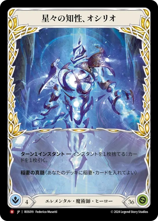 「印」があれば2コスト6点とコスト比率が非常に良い秘術ダメージカードです。《オシリオ》なら増幅しつつ9-10点でのプレイもよく狙えるので、守護者など、《オシリオ》相手にファティーグを狙ったり、物理ダメージに強い相手に活躍しそうなカードです。