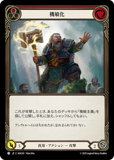 竜系カード以外では《機敏化》を3枚採用しているのも特筆すべき点。用途は恐らく2つ。