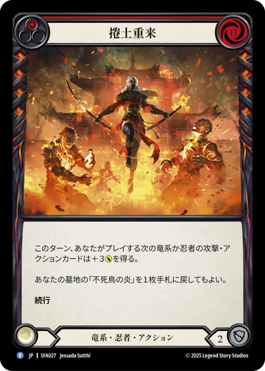特に目玉の新カード《不死鳥の技:戦》は「《不死鳥の炎》を捨てること」をコストにこのターンの竜系攻撃アクション全てを強化しつつ2ドローする強力なカード。かつて《ファイ》が活躍した際に使えた《戦の技法》のリメイクのようなカードですね。