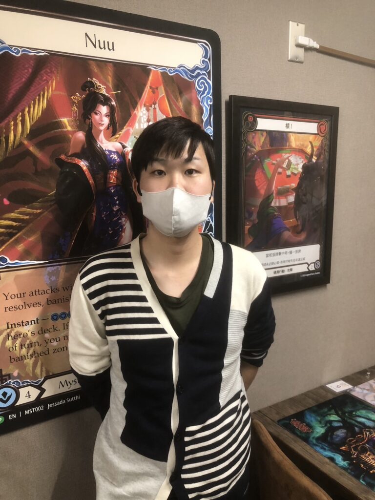 決勝は矢野選手(写真左)の《報復のドラカイ、シンドラ》対 ぱに選手(写真右)の《緋色の復讐者、アイラ》