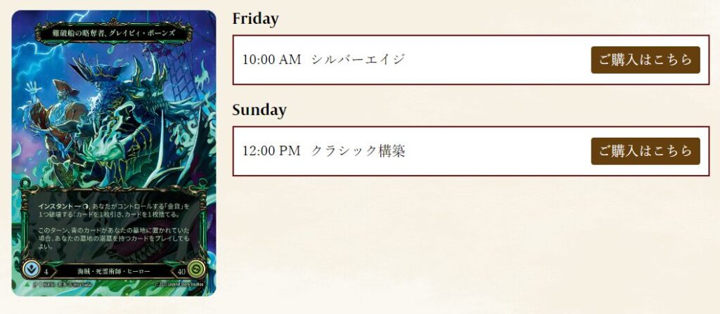 こちらはフォーマットが「シルバーエイジ」で行われます。
