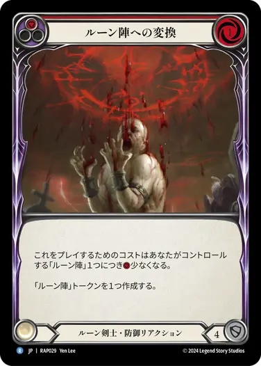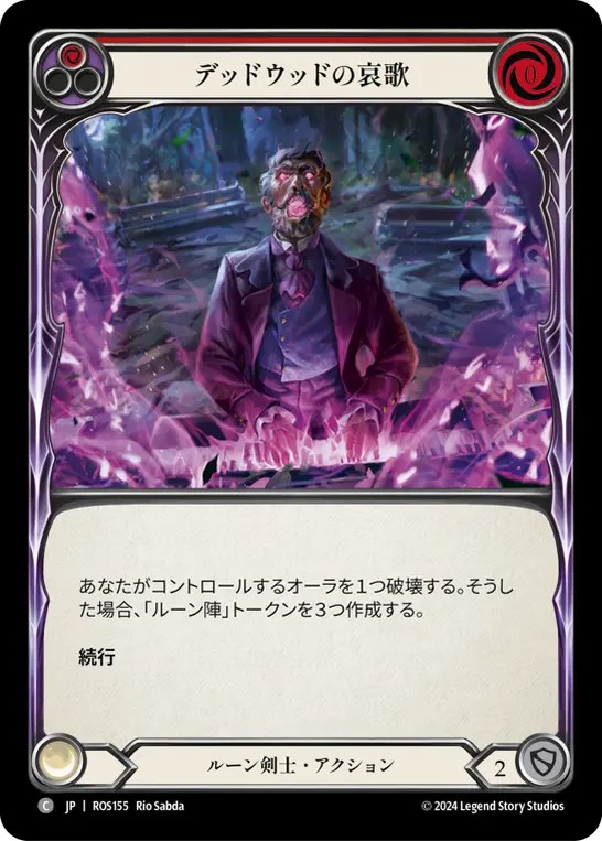 つまり、《ルーン陣》を作成するカードが重要です。実質リソースのような役割を果たすわけですね。《ルーン陣への変換》や《デッドウッドの哀歌》などのカードはいずれも欠かせないものですが、特に重要なのは《邪悪な詠唱》。《邪悪な詠唱》は攻撃アクションのプレイ時に《ルーン陣》を出してくれるため、続行を付けた「ルーン門」攻撃→《邪悪な詠唱》により《ルーン陣》が出る→2枚目の「ルーン門」で攻撃…という連続攻撃が可能になります。