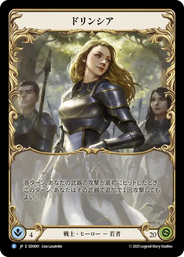 《ドリンシア》は初めて登場した戦士ヒーローであり、戦士らしく持つ武器によりガラっと戦い方も変わるのが特徴ですが、今回紹介するのは《黎明剣》に特化したデッキ。