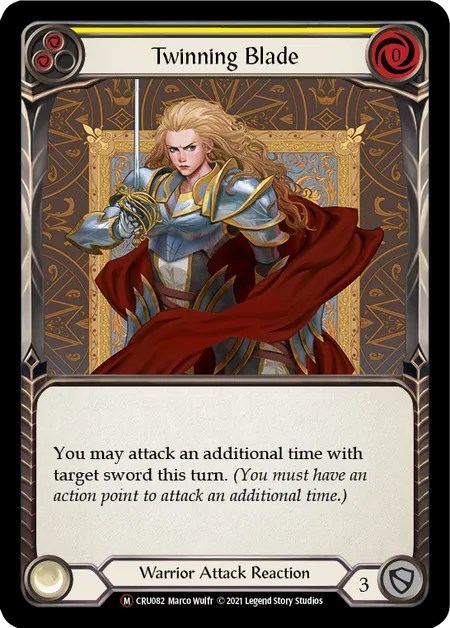 特にドリンシア特化である《Singing Steelblade》は「反響(=Reprise)」の条件を満たしているとデッキから任意の攻撃リアクションをサーチしてプレイできるという強力な性能。ちょうど攻撃が通るように攻撃リアクションをサーチしたり、続行を付ける《Glint the Quicksilver》をサーチしたり、《Twinning Blade》をサーチして2回目の攻撃を可能にしたり、使い方は多岐にわたります。