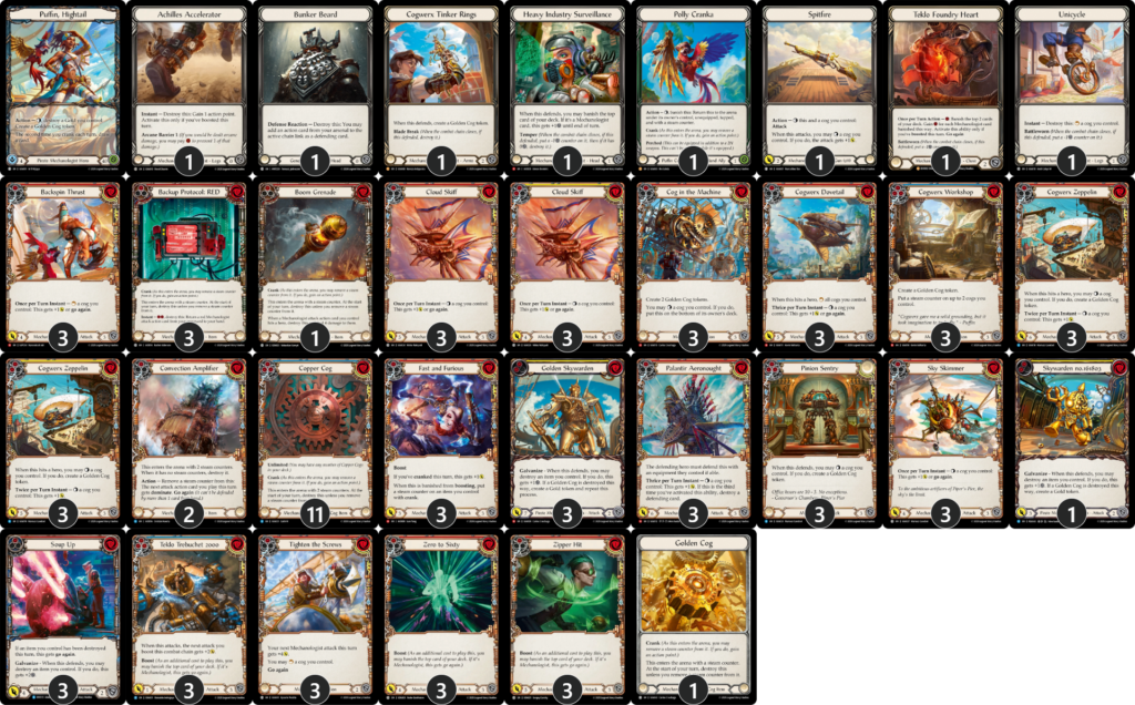 《パフィン》は機械技師の中でも「歯車」に特化したヒーロー。基本戦略としては、まず《機械の中の歯車》《銅の歯車》などで歯車を並べて、