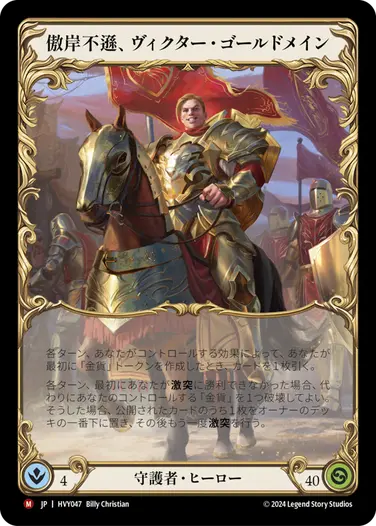 こちらのタイプはプレイヤーの間では「ファティーグヴィクター」「亀ヴィクター」「実家ヴィクター」などの俗称で呼ばれており、《鉄拳の試練》などの「激突」カードを減らし、防御リアクションや回復カードを多数採用し延命に特化しています。勝ち方としては《ゴールドメインの地所の訪問》の使い回し、もしくはファティーグを勝ち筋としており、プロツアー14位(リストはこちら)、コーリング横浜5位の戦績を残しています。