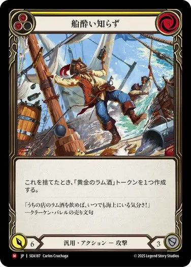 これらの続行が付くカードが14枚採用。さらに《素早い振りかぶり》と《船酔い知らず》の2種のカードから作成されるトークンで続行付与が可能なので、連続攻撃をサポートします。