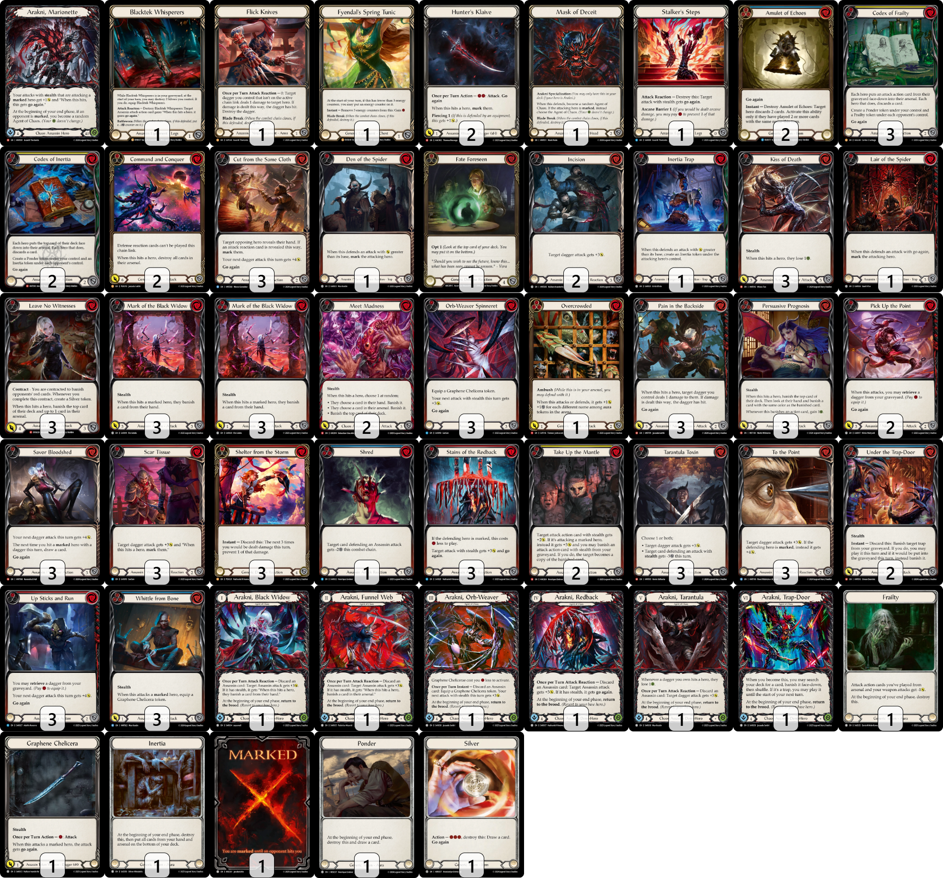 今大会使用最多となった暗殺者《傀儡・アラクニ》は環境でも屈指の完成度を誇るアグロ/妨害デッキです。