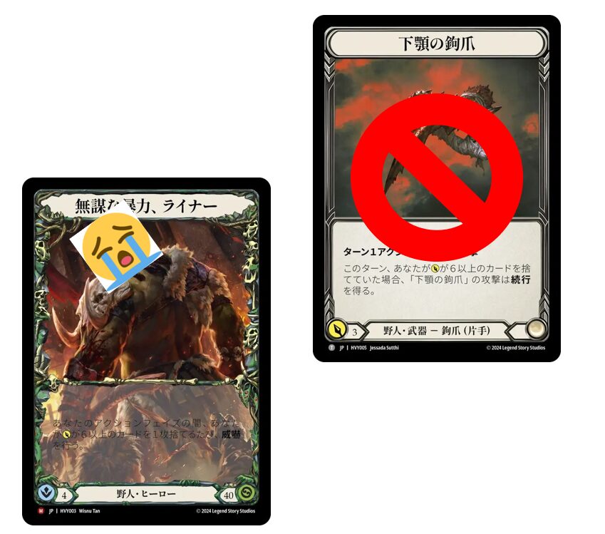 《ライナー》は《ケイヨ》のLLにより《下顎の鉤爪》が使用できなくなっており、今環境で大幅な弱体化を受けたヒーローでした。